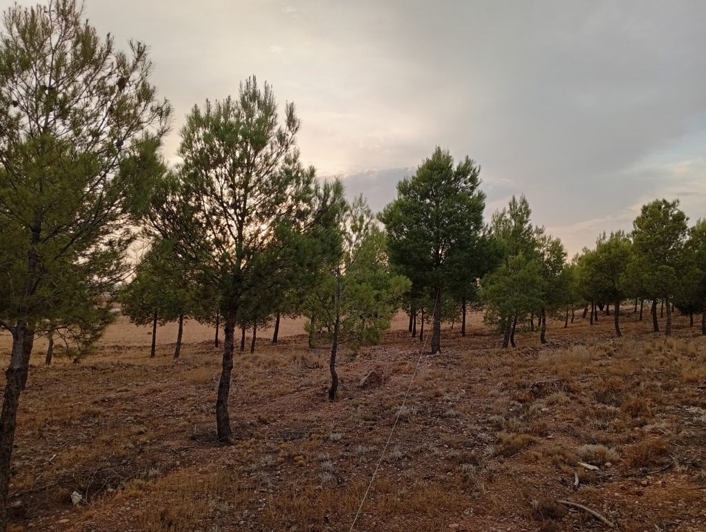 - Fotografía de antena de hilo montada en el pinar: