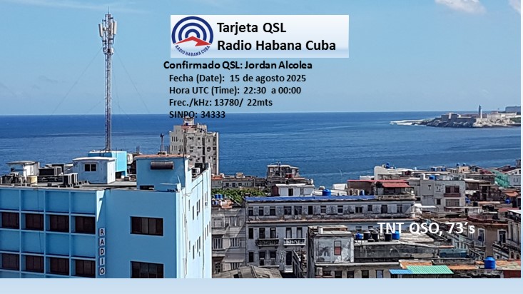 Por fin he conseguido una verificación de Radio Habana Cuba, tenia muchísimas ganas y con las frecuencia activadas hace un tiempo desde Bejucal en 13780 Khz la he podido lo primero disfrutar de escucharla y conseguir la QSL además de por fin tener a Cuba como radio país verificado. La e-QSL recibida es muy bonita donde la Bahía de La Habana y el edificio de Radio Progreso.