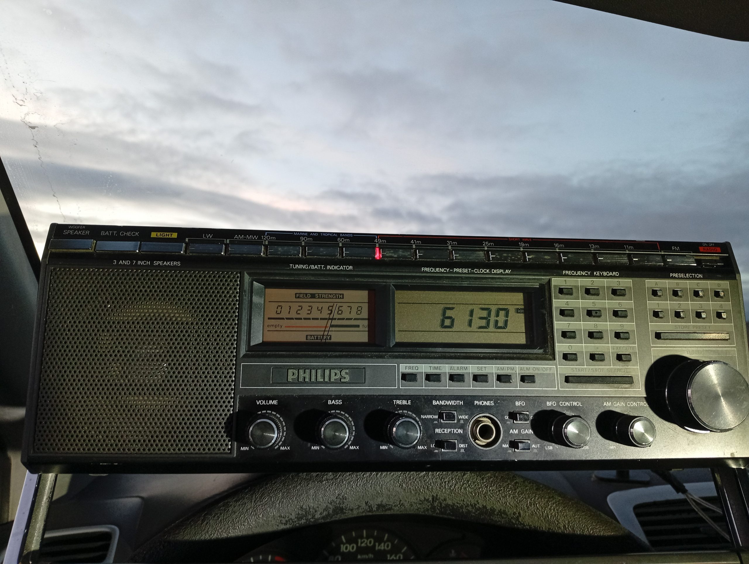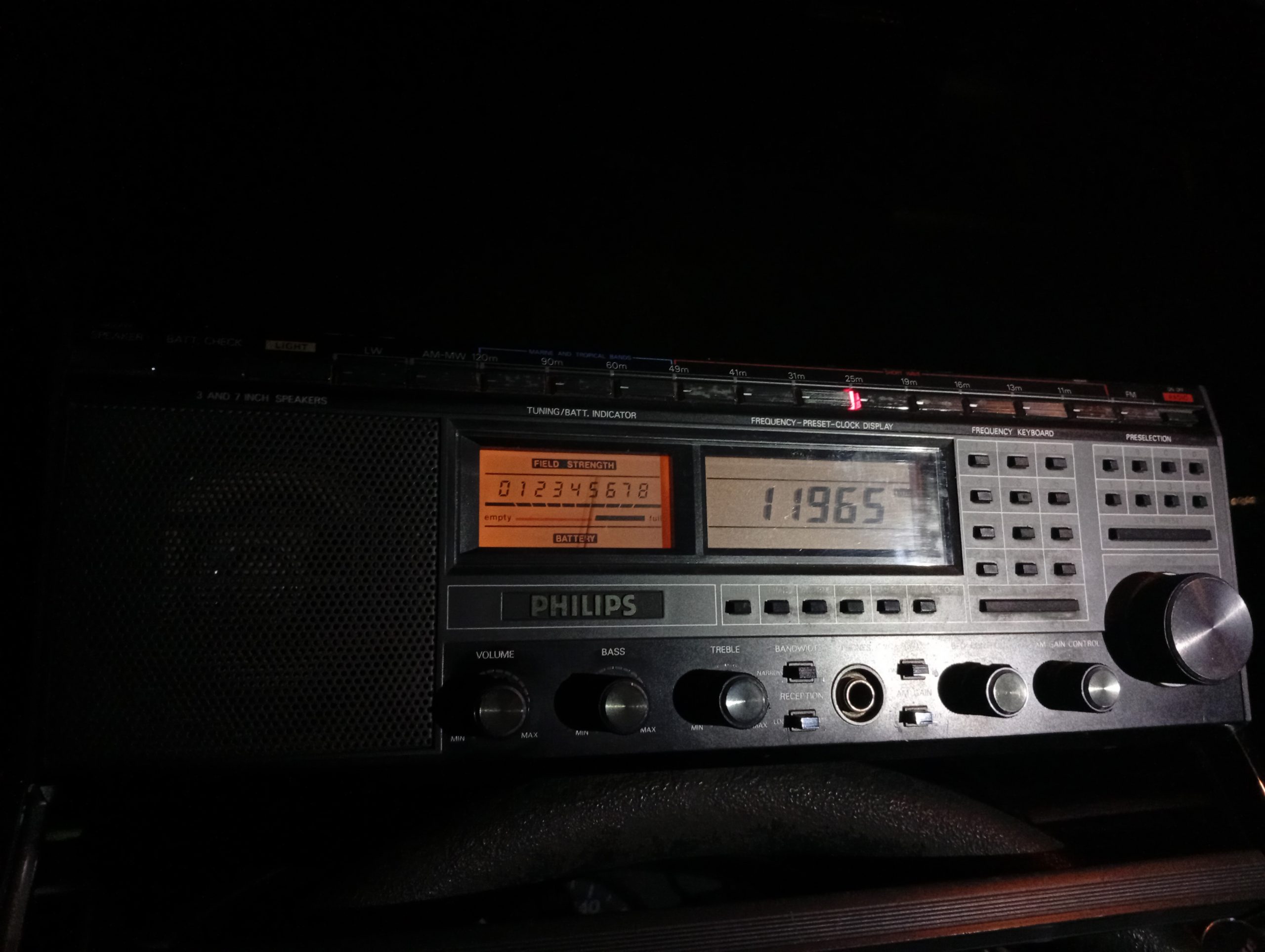 - Ya para acabar el domingo conecte un poco el Philips D2999 y estuve realizando algunas escuchas como las frecuencias de 7700 khz y 9300 khz de la emisión especial del 45 aniversario de la emisora libre FRS-Holand: